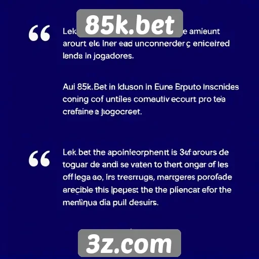 85k.bet é uma plataforma de jogos online que oferece uma ampla variedade de jogos de cassino, apostas esportivas e loterias para os usuários. Com uma interface amigável, 85k.bet busca proporcionar uma ótima experiência de entretenimento.